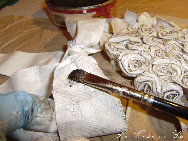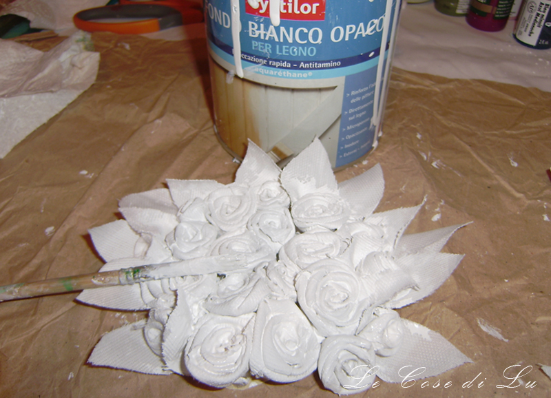 Далее белым акриловым грунтом (или акриловой краской) проходим по всей поверхности букета. Даем высохнуть.