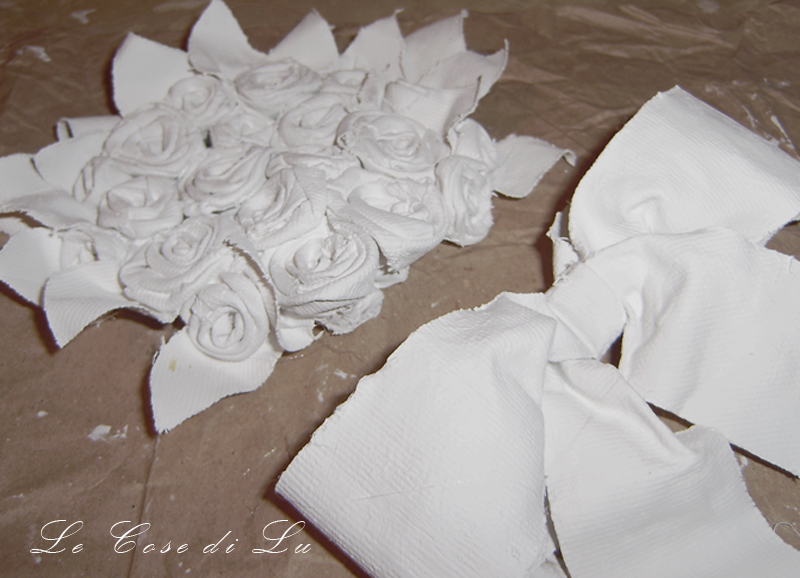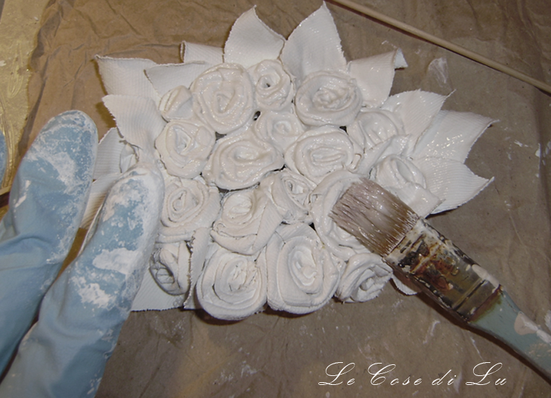 Далее белым акриловым грунтом (или акриловой краской) проходим по всей поверхности букета. Даем высохнуть.